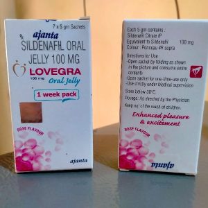 印度Lovegra果凍威而鋼是一款由印度Ajanta公司專門為女性開發的果凍凝膠狀女用偉哥。Lovegra果凍由枸櫞酸西地那非組成,該成分可治療女性性器官的不敏感,增加其敏感度,從而使她們擺脫對性生活的擔心。Lovegra果凍可改善陰道區域的血液供應,從而消除不敏感現象。Lovegra果凍是一款有效的女性催情春藥,其作用持續近五個小時。由於包裝是粉紅色,Lovegra果凍也被稱為粉紅果凍。