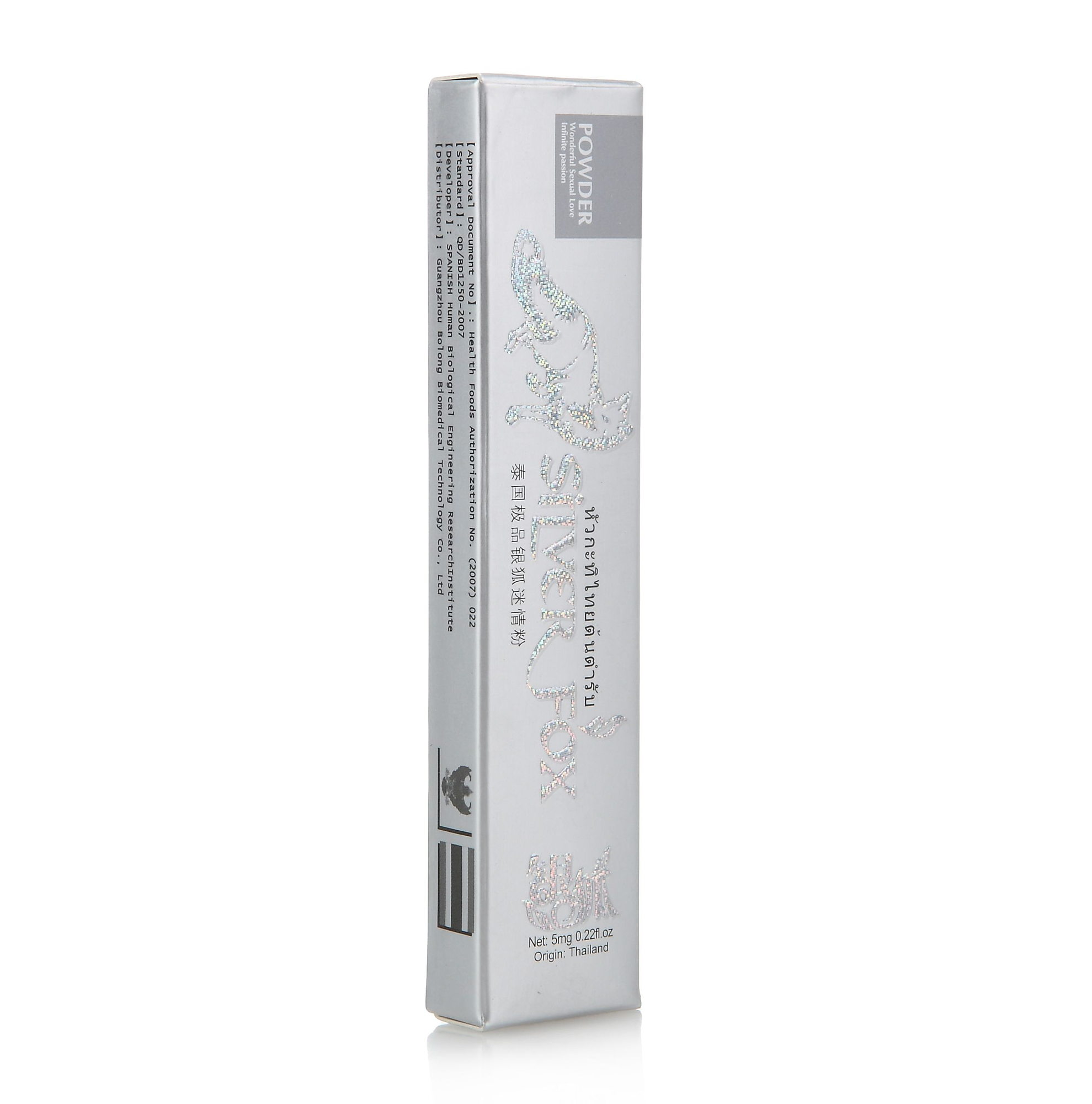 泰國銀狐迷情粉為粉狀可迅速溶於任何酒水以及飲料中而且不易發現。 對女性催情、誘情效果極佳,服用極品銀狐粉後可使女性5分鐘後產生令自己難以忍受的春情、 放心動蕩、顏面緋紅、欲火如潮般的感覺充滿全身、令女性欲罷不能、呼吸急促、急需做愛。